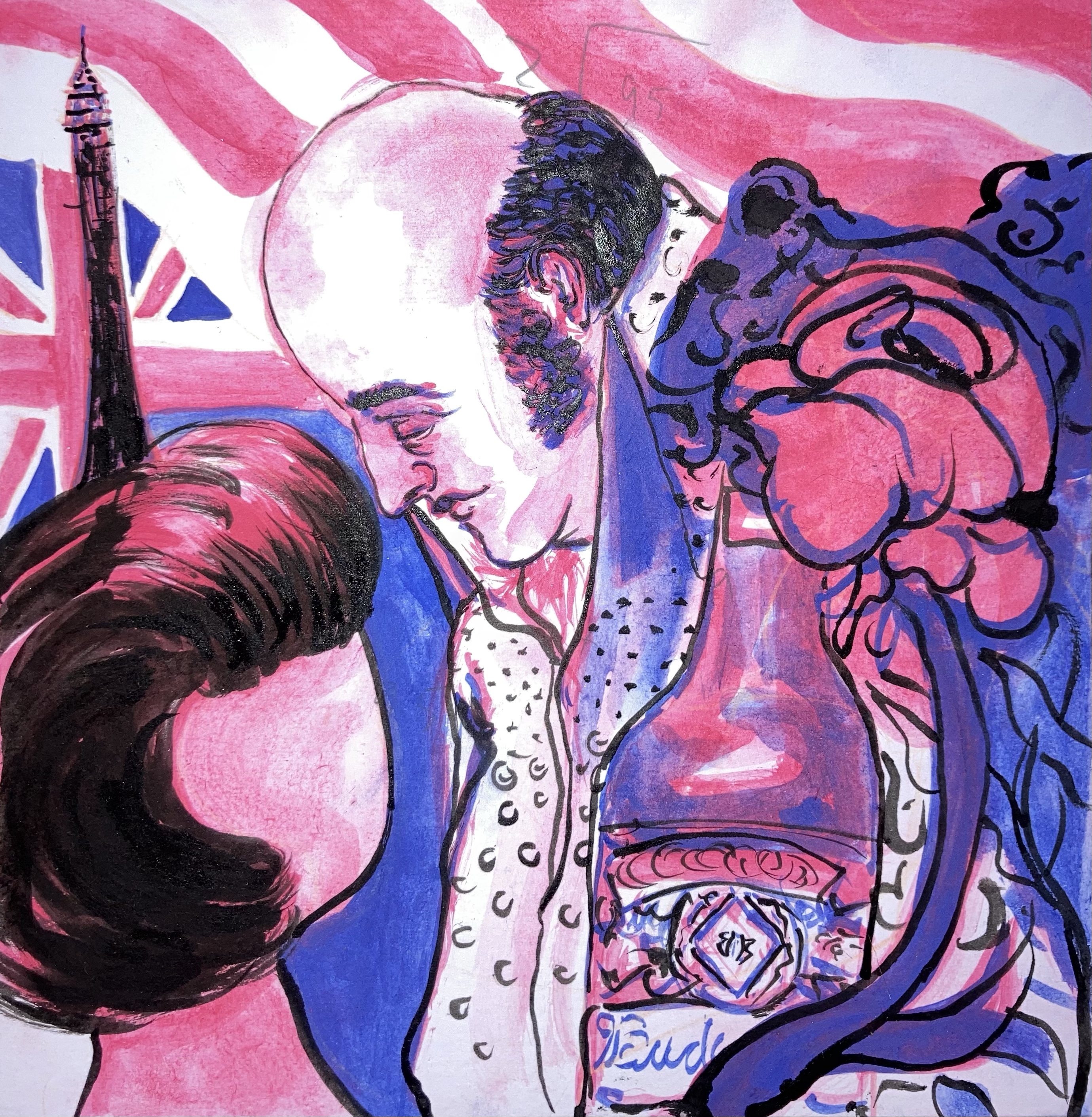 Three studies for a painting inspired by the Manic Street Preachers song “Elvis Impersonator Blackpool Pier”.